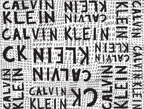 Hand drawn logo print design. Larger logos layered on top of smaller logos.